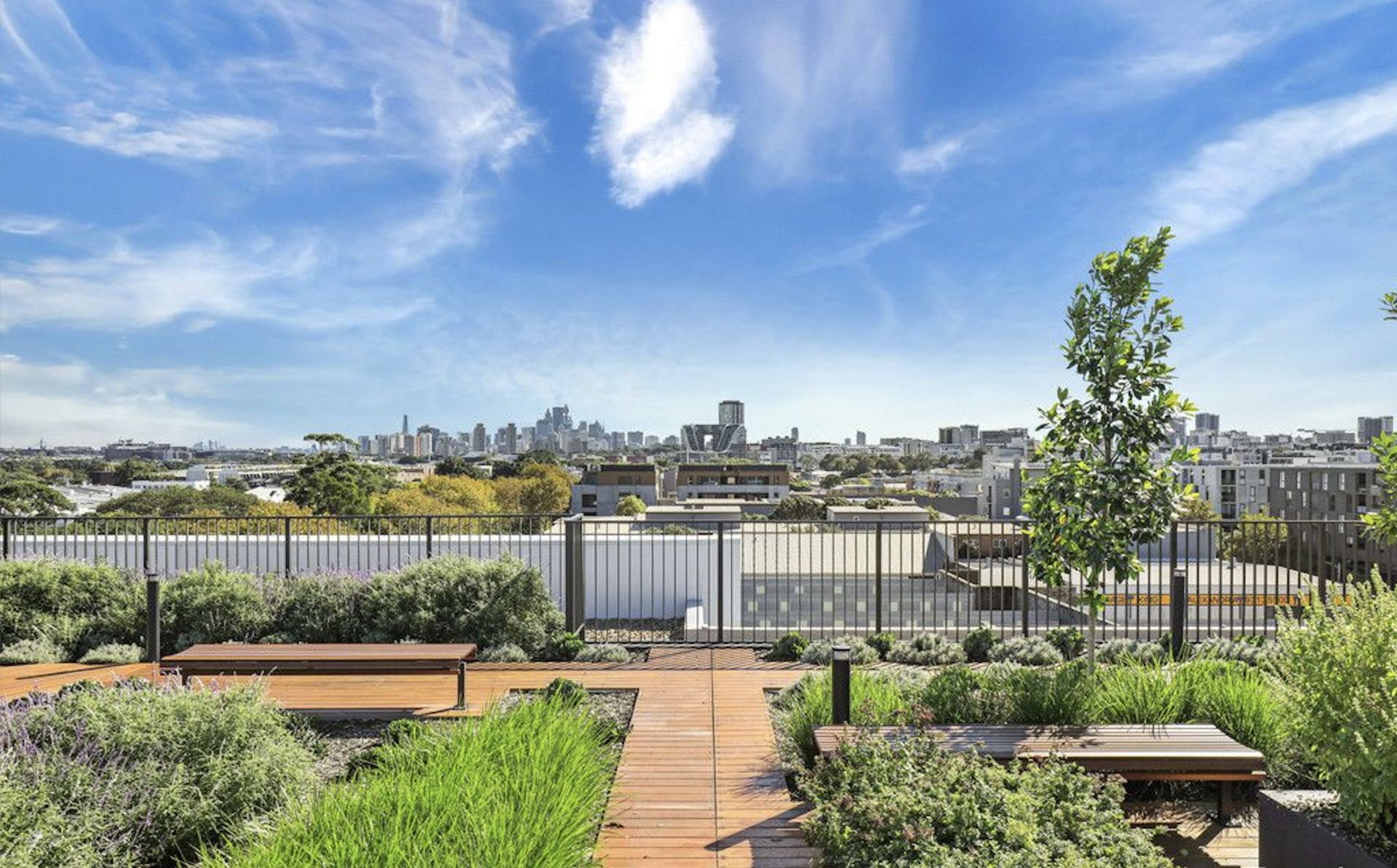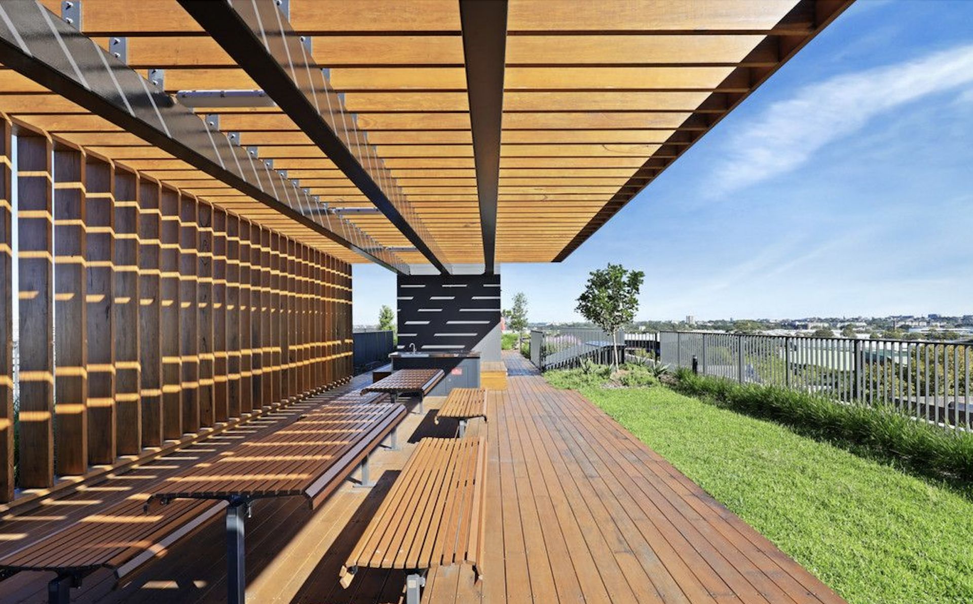 - Enormous 855m² communal rooftop garden with two outdoor kitchens and panoramic city views