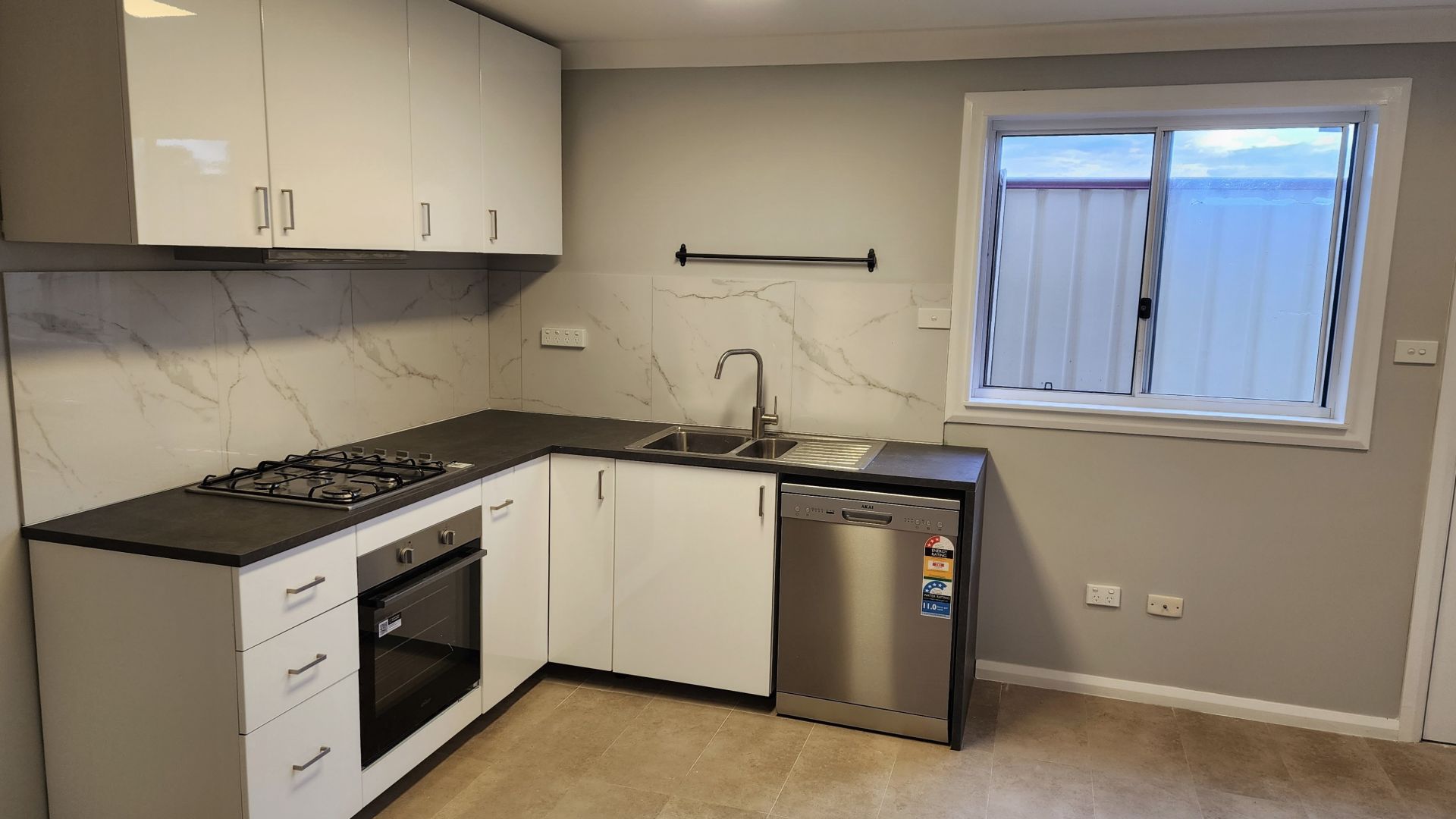 - Modern kitchen with Gas cooktop, electric oven, and dishwasher